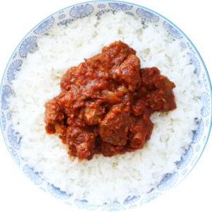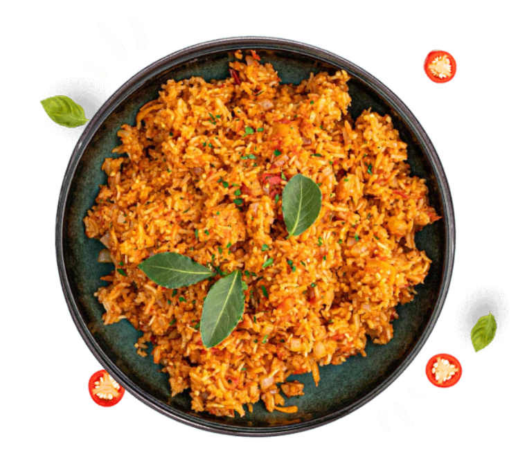 Rice, tomatoes, onions, peppers, and other seasonings.